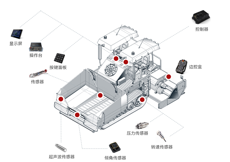ng娱乐智能摊铺机解决方案整合了感知技术、自动控制系统和数据分析算法,实现了摊铺机高度智能化操作。通过实时获取路面信息和实时调整施工参数,使摊铺机操作更加精准、高效和可靠。